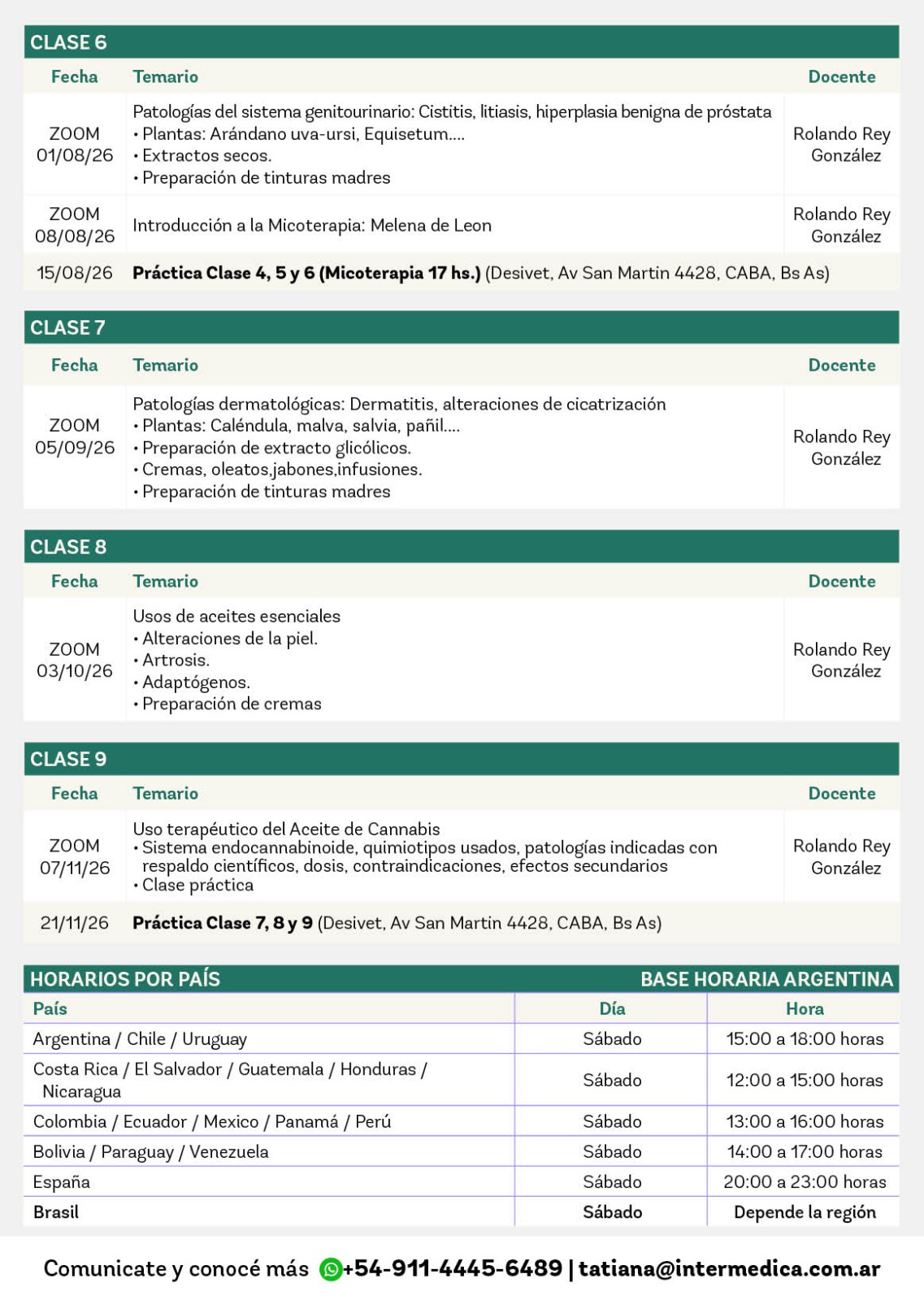 Cada mes hay 1 clase teorica por zoom, y es el Primer sabado de cada mes, de 15 a 18hs