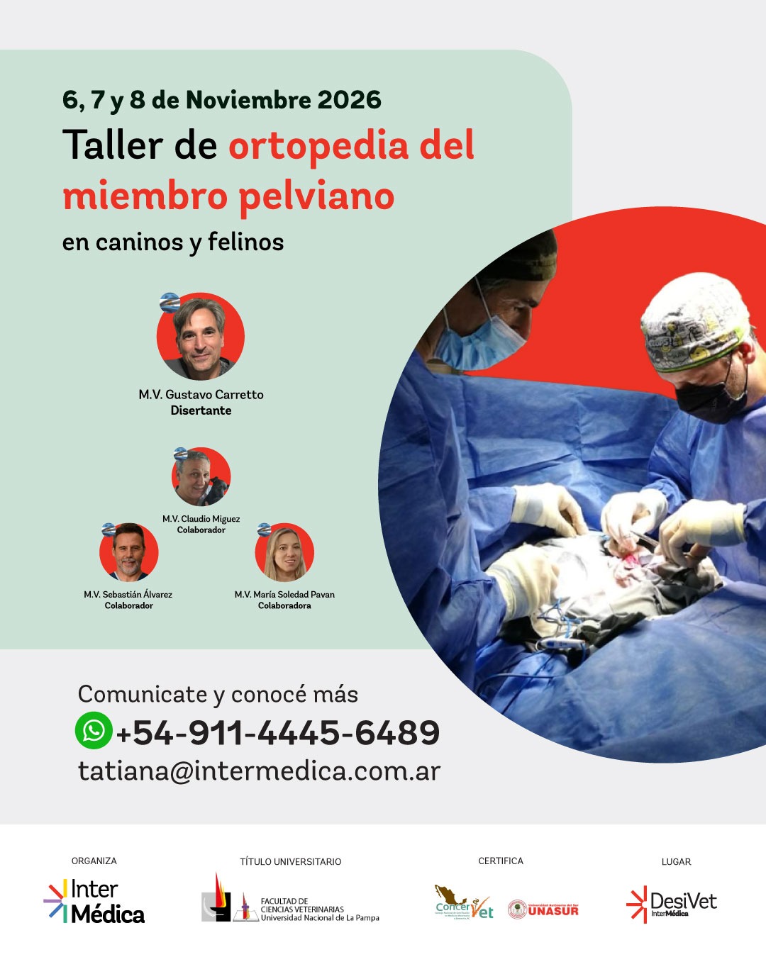 6, 7 y 8 de Noviembre 2026Presencial en DESIVET, Av San Martin 4428, CABA, Buenos Aires, ARgentinade 9 a 18hs corridoIncluye almuerzos y coffee breaksValor USD 700